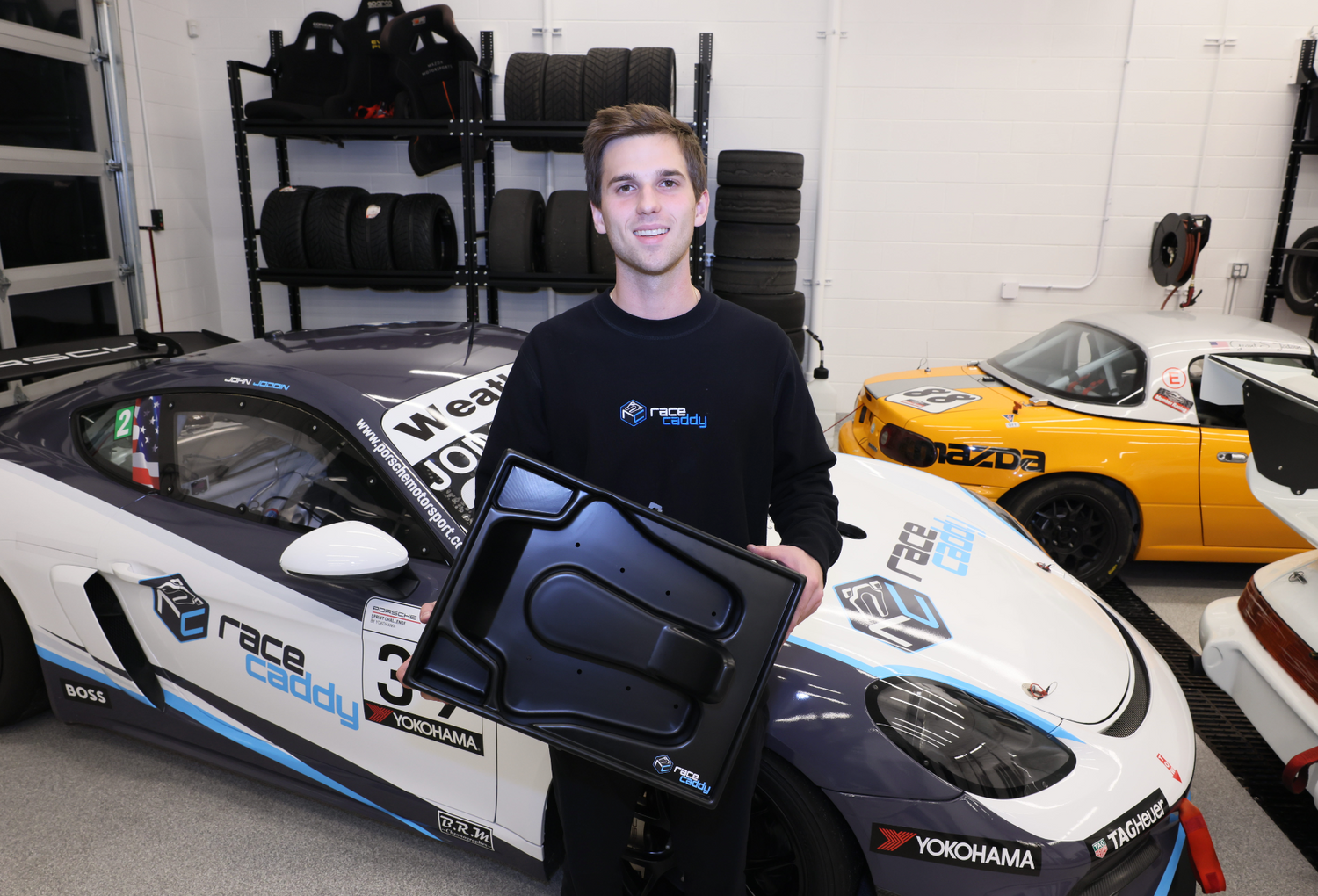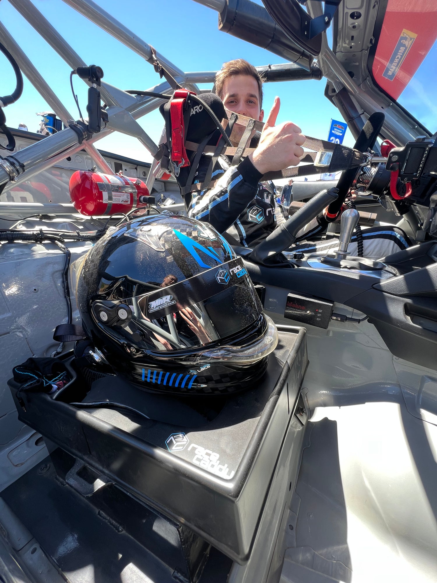 The founder of Race Caddy was sick of his helmet getting thrown around in the car after a session and not having anywhere to put his gear. Shocked that there wasn’t a device to hold his helmet and other racing gear in the car, he decided to make Race Caddy.