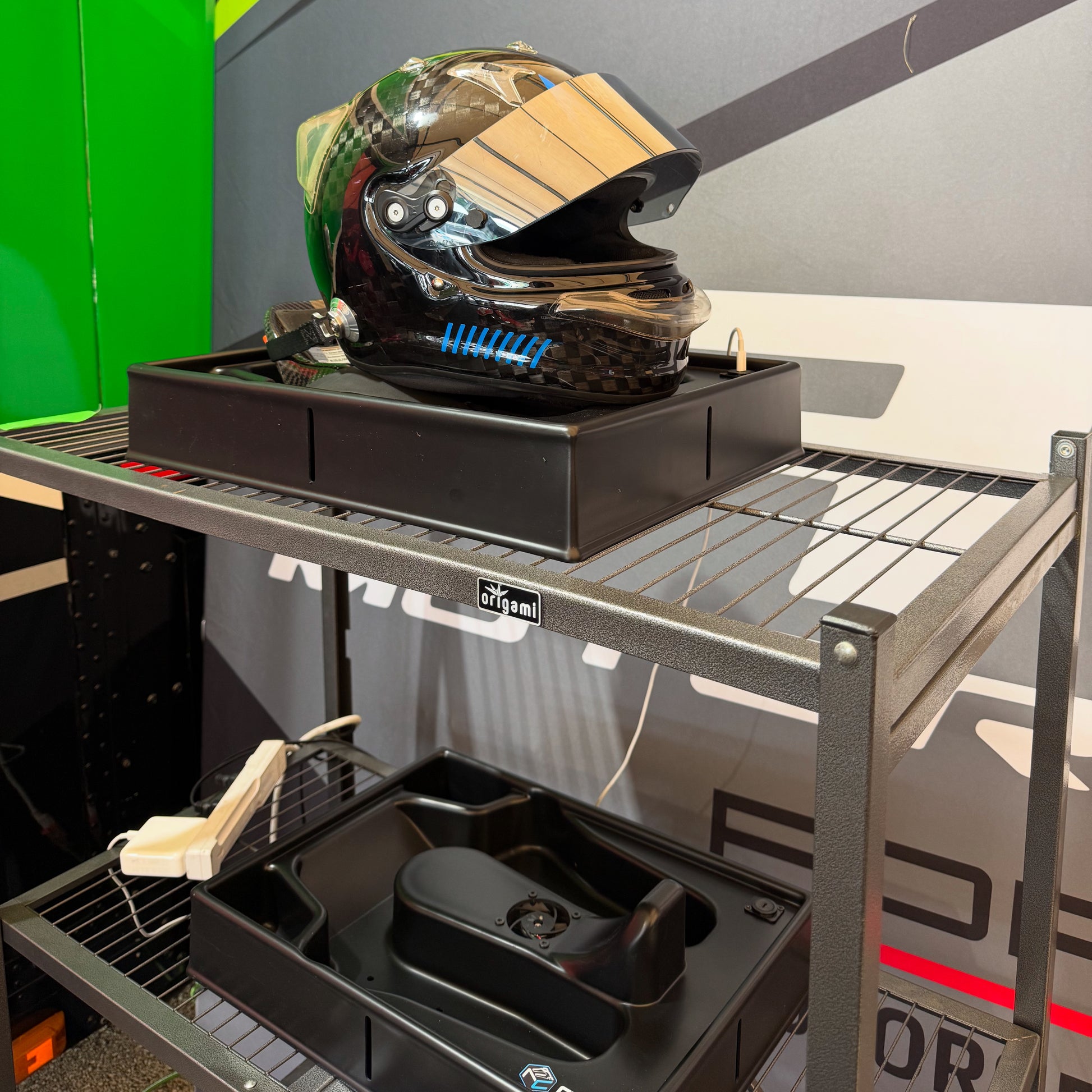 Race Caddy Competition is the latest evolution of the Race Caddy lineup, designed specifically for racers who demand both function and convenience. What sets this model apart is its built-in fan, which helps dry your helmet while it rests securely in the caddy—perfect for hot or humid conditions.